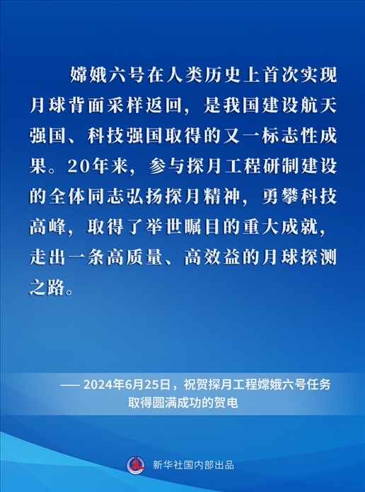 黨的十八大以來(lái),在以習(xí)近平同志為核心的黨中央關(guān)心引領(lǐng)下,中國(guó)探月工程取得舉世矚目的重大成就,為探索宇宙奧秘、增進(jìn)人類福祉屢立新功,為以中國(guó)式現(xiàn)代化全面推進(jìn)強(qiáng)國(guó)建設(shè)、民族復(fù)興偉業(yè)作出卓越貢獻(xiàn)。
