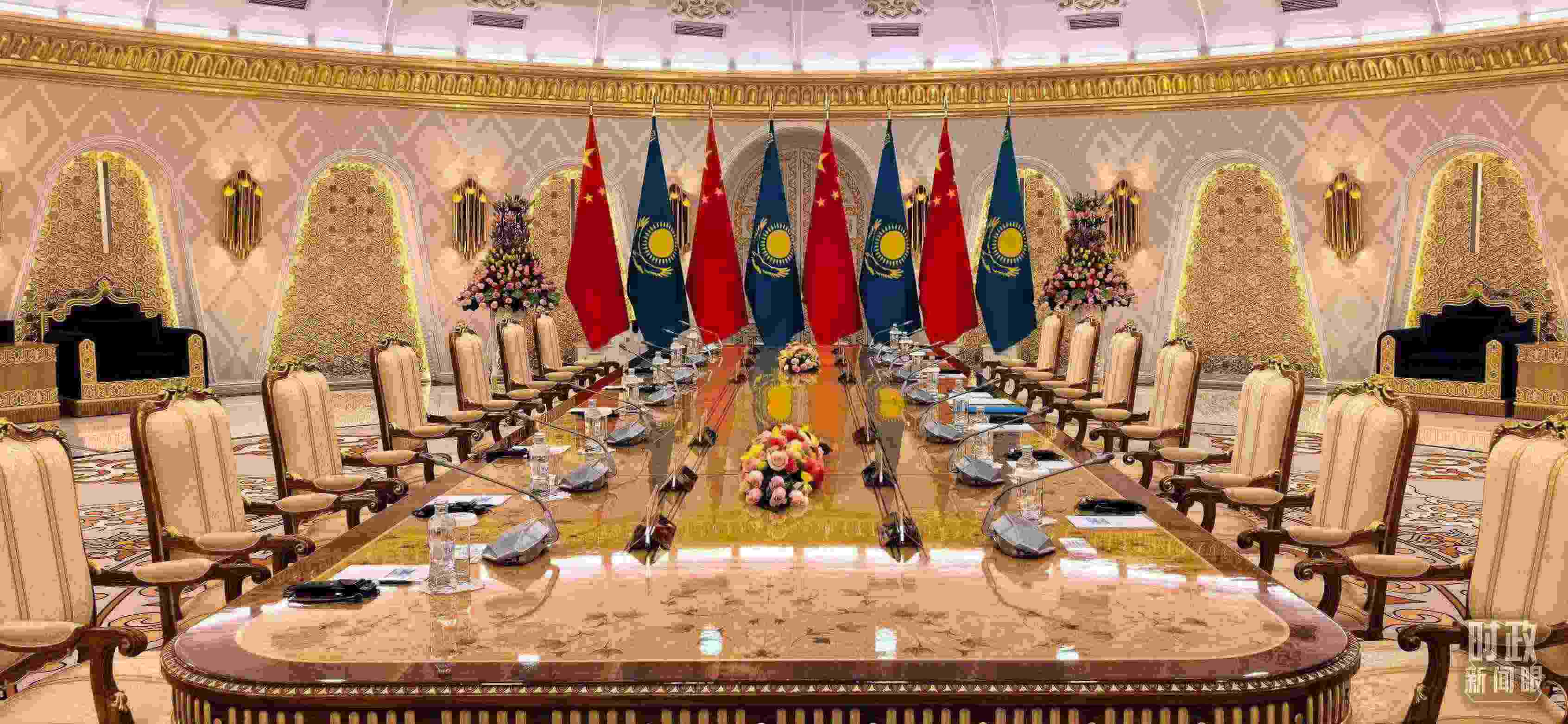 △中哈元首小范圍會(huì)談開始前的現(xiàn)場。(總臺(tái)央視記者劉岳拍攝)