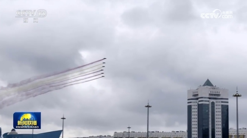 當(dāng)?shù)貢r(shí)間7月2日,習(xí)近平主席飛抵阿斯塔納,開啟中亞之行。哈薩克斯坦總統(tǒng)托卡耶夫在機(jī)場舉行盛大迎賓儀式。第二天上午,哈薩克斯坦首次在總統(tǒng)府歡迎儀式上安排戰(zhàn)機(jī)表演,以最高禮儀歡迎習(xí)主席到訪。