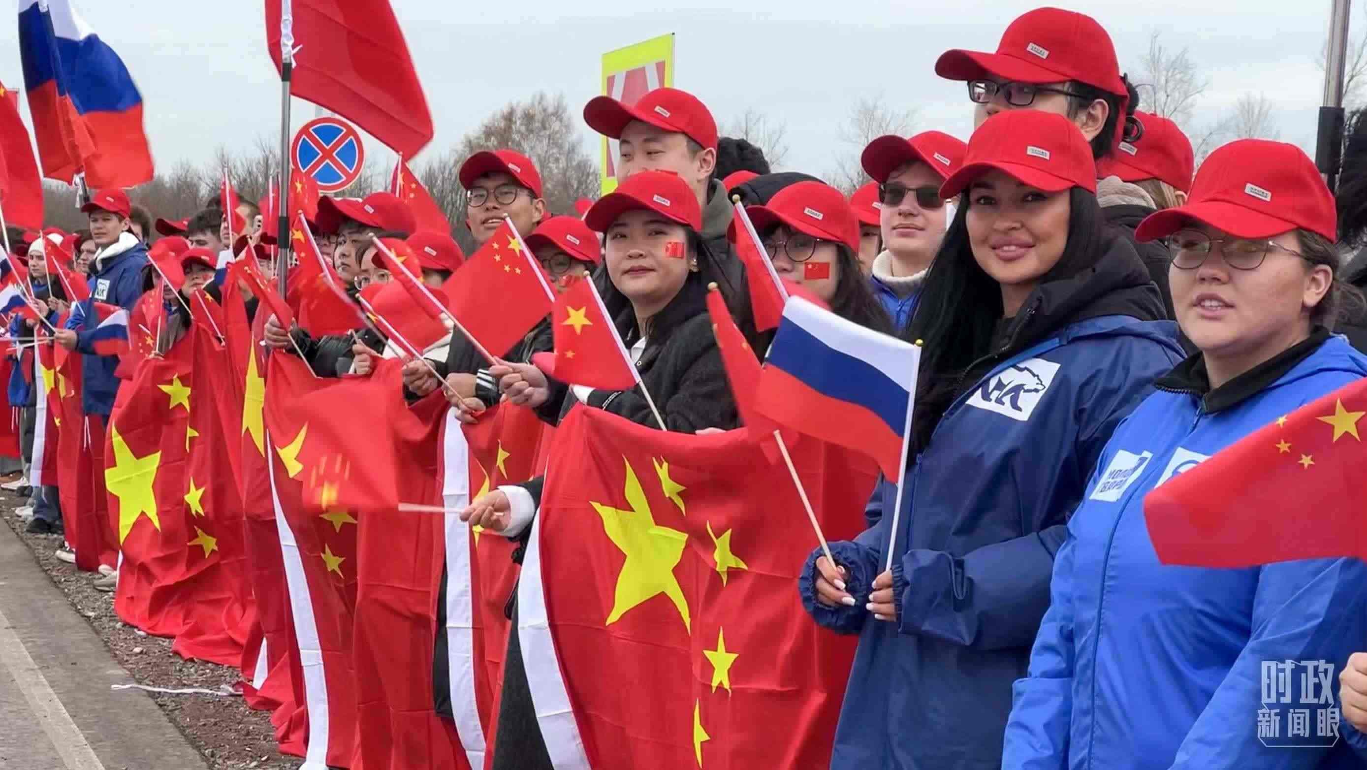 △ 俄羅斯喀山各界人士揮舞中俄兩國(guó)國(guó)旗,歡迎習(xí)主席到訪。(總臺(tái)記者蔣泓橋拍攝)