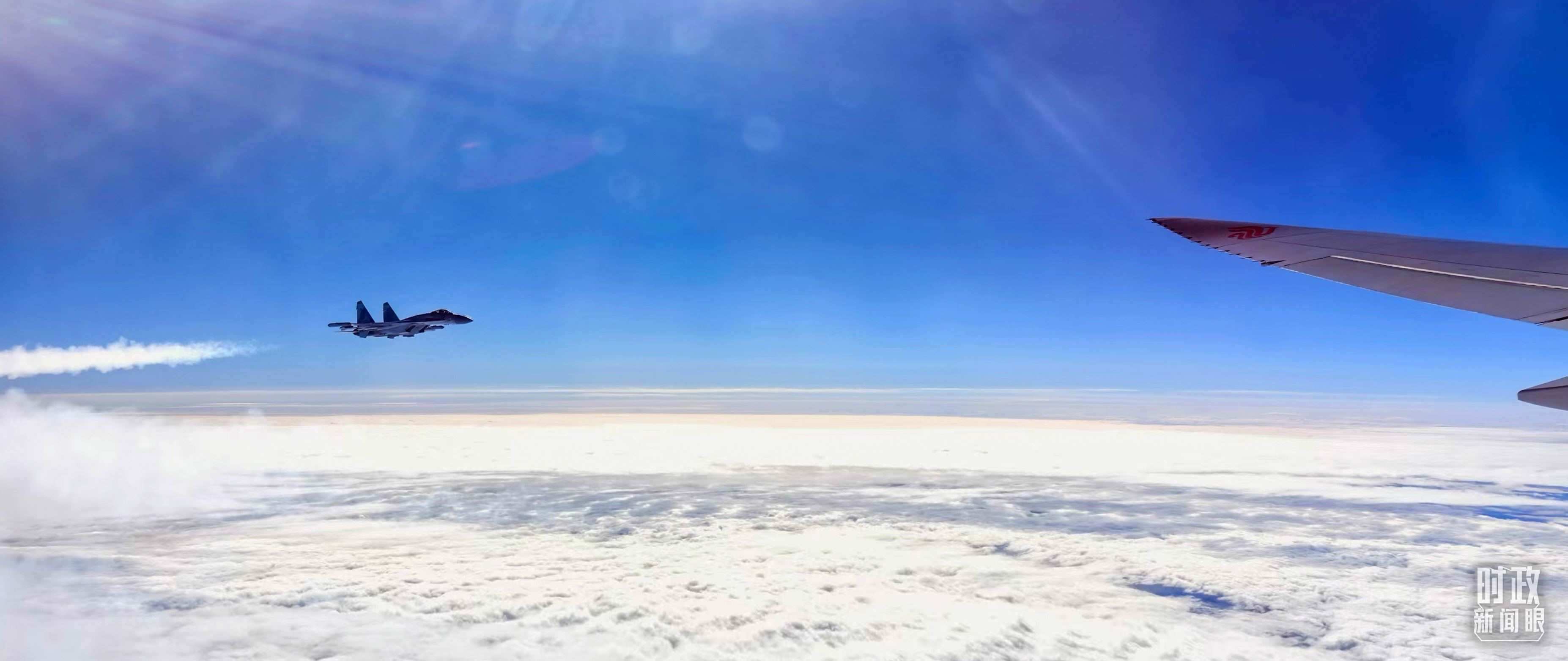 △ 習(xí)主席乘坐的專機(jī)進(jìn)入俄羅斯領(lǐng)空時(shí),俄空軍戰(zhàn)機(jī)升空護(hù)航。(總臺(tái)央視記者李錚拍攝)