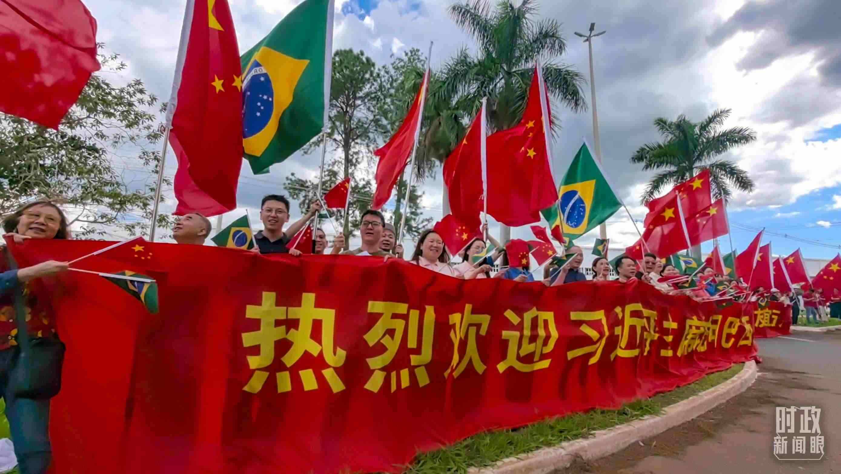 △巴西各界人士熱烈歡迎習(xí)主席到訪。(總臺(tái)央視記者范學(xué)禹拍攝)