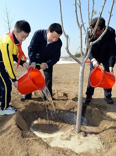 2014年4月,南水北調(diào)中線一期工程通水前夕,配套工程北京團(tuán)城湖調(diào)節(jié)池迎來(lái)了種樹(shù)人習(xí)近平。在那里,他接連種下了6棵樹(shù),植樹(shù)結(jié)束,還向工程負(fù)責(zé)人了解了南水北調(diào)水源的水質(zhì)與保護(hù)等問(wèn)題。