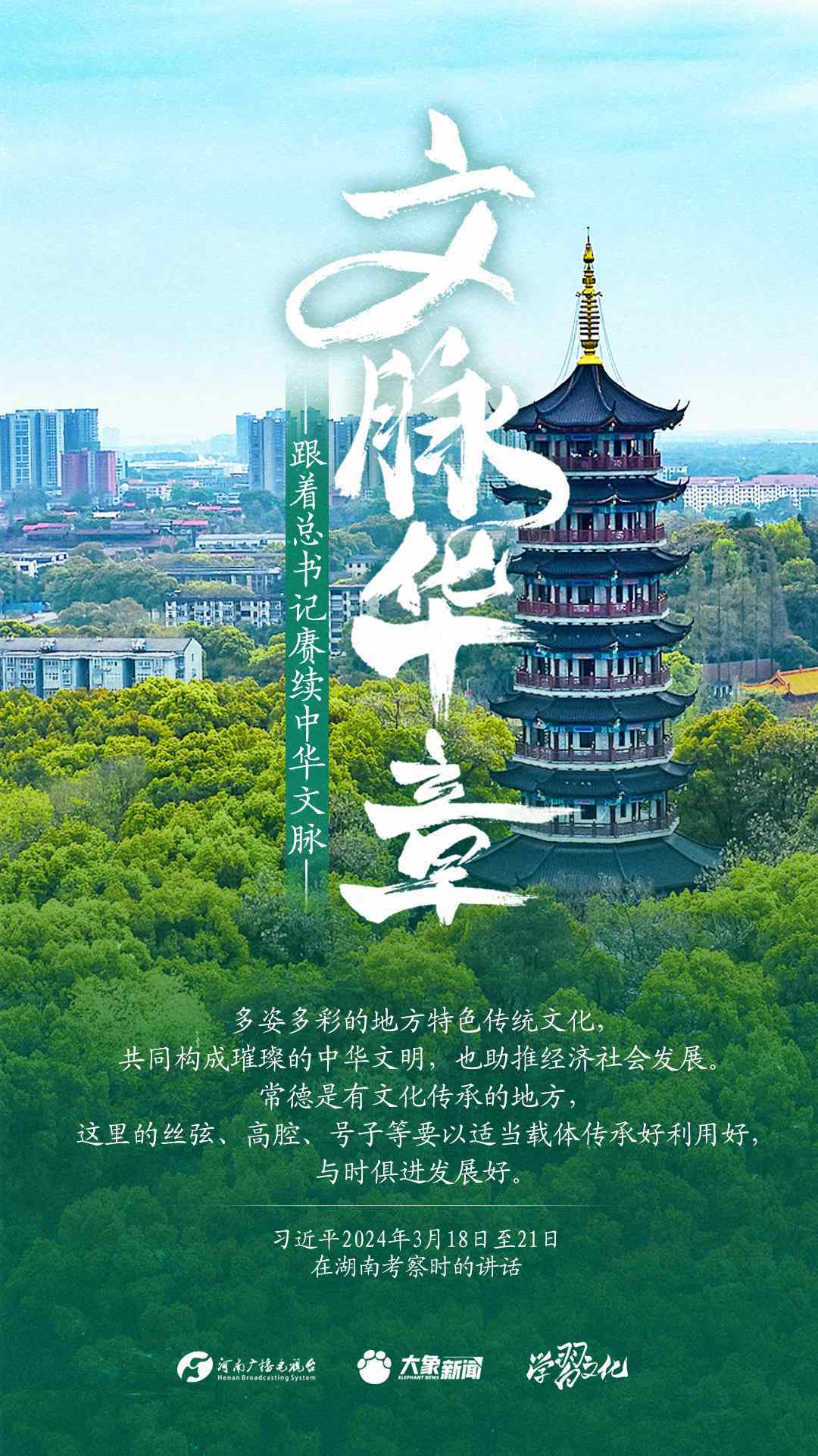 習(xí)近平總書記高度重視中華優(yōu)秀傳統(tǒng)文化的繼承和弘揚(yáng)。2024年,總書記一如既往,念茲在茲。在赴地方考察、主持召開重要會議等眾多場合,多次對傳承發(fā)展中華優(yōu)秀傳統(tǒng)文化作出重要講話重要指示。大象新聞邀您一起,跟著總書記賡續(xù)中華文脈,推動中華優(yōu)秀傳統(tǒng)文化創(chuàng)造性轉(zhuǎn)化和創(chuàng)新性發(fā)展,在新的起點(diǎn)上繼續(xù)推動文化繁榮、建設(shè)文化強(qiáng)國、建設(shè)中華民族現(xiàn)代文明。