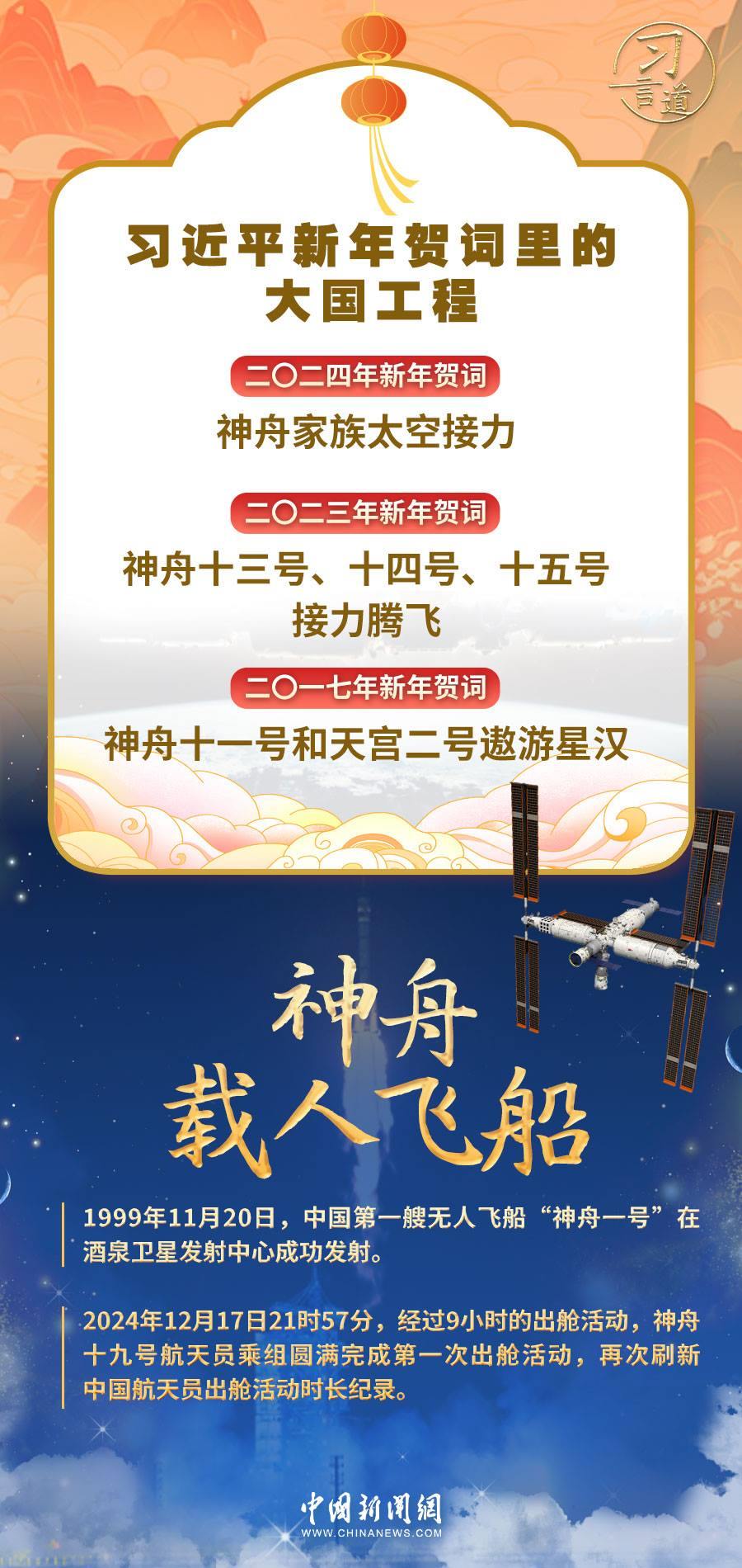 習(xí)近平主席在二〇二五年新年賀詞中,為中國人逐夢星辰大海的豪情壯志喝彩。新年之際,讓我們一起重溫習(xí)近平主席在新年賀詞中點(diǎn)贊的大國工程。