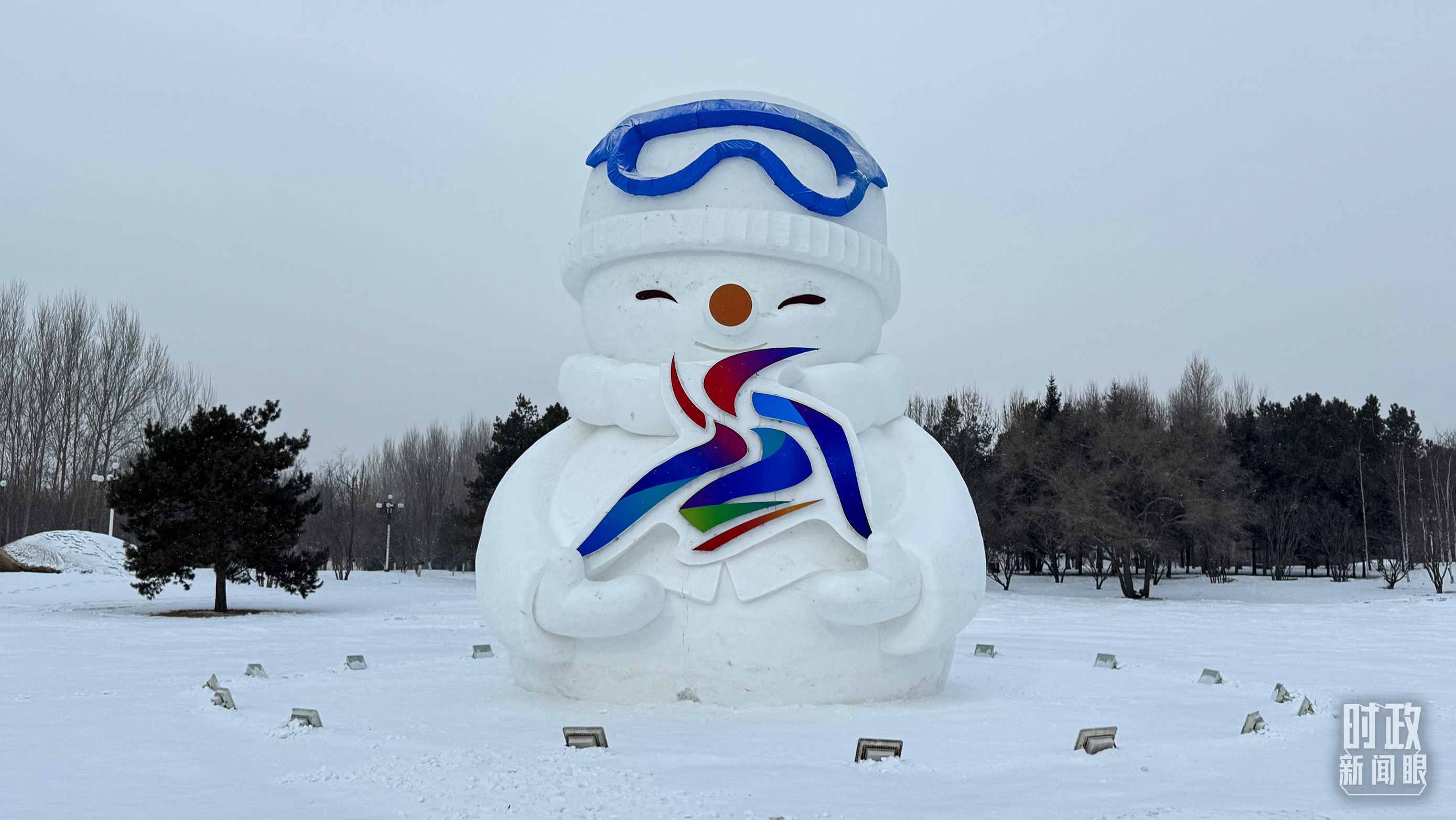 △裝飾有亞冬會(huì)會(huì)徽元素的雪人。(總臺(tái)央視記者蔣碩拍攝)