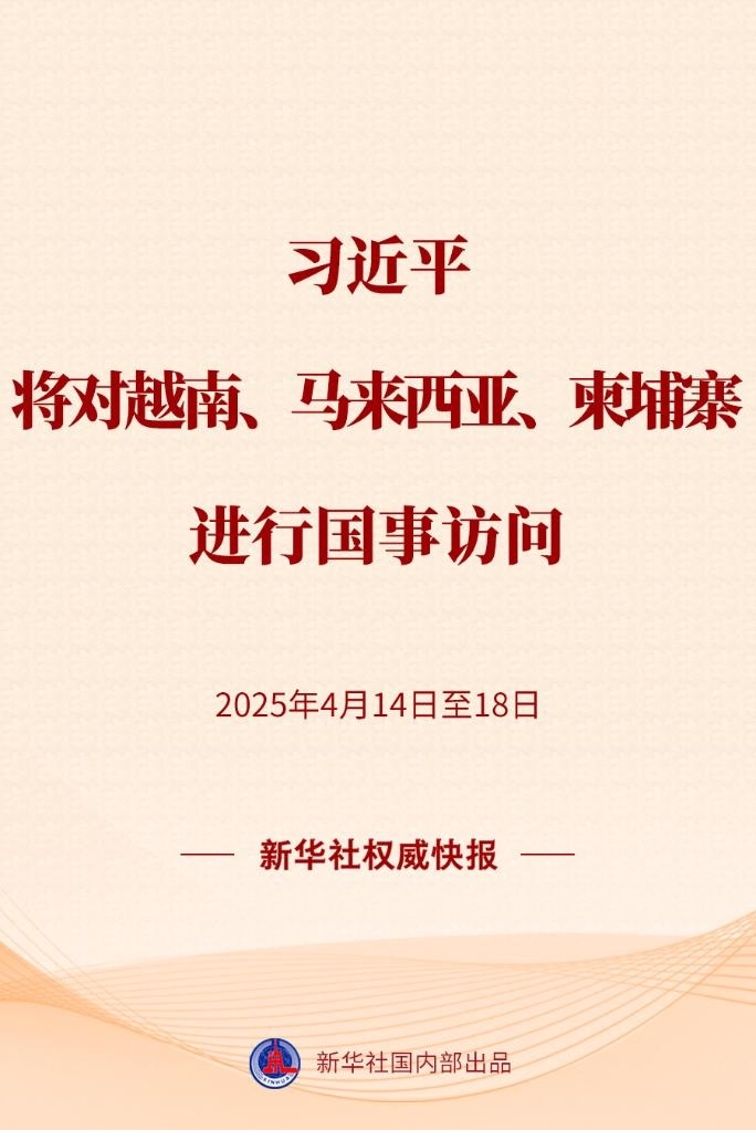 習(xí)近平將于4月14日至18日對(duì)越南、馬來(lái)西亞、柬埔寨進(jìn)行國(guó)事訪問(wèn)。