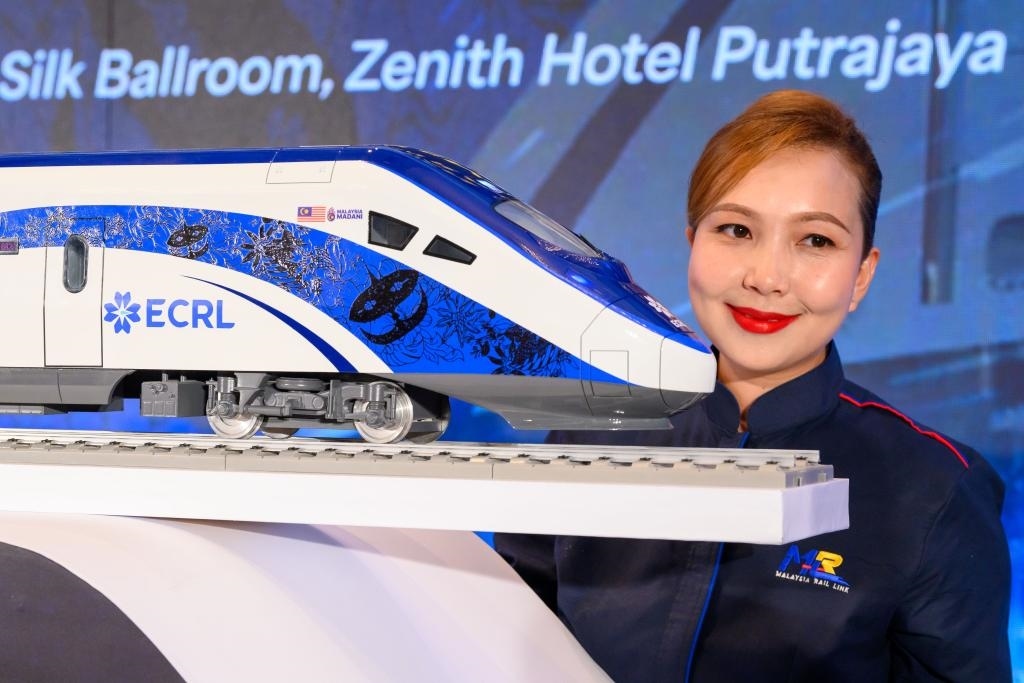 2024年12月18日,在馬來(lái)西亞普特拉賈亞,模特與新的動(dòng)車組模型合影。新華社發(fā)(張紋綜攝)