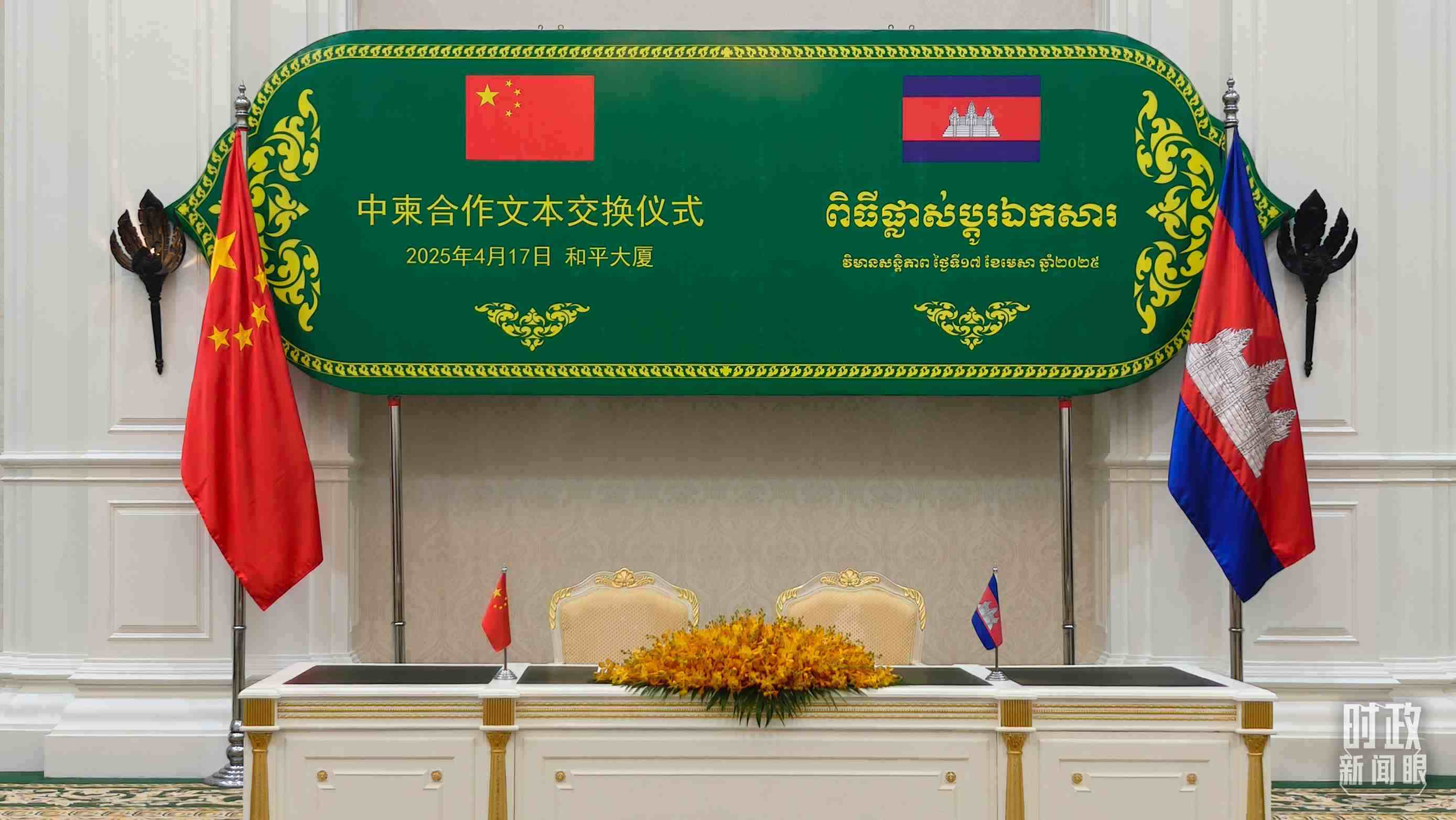 △中柬合作文本交換儀式現(xiàn)場。(總臺央視記者楊立峰拍攝)