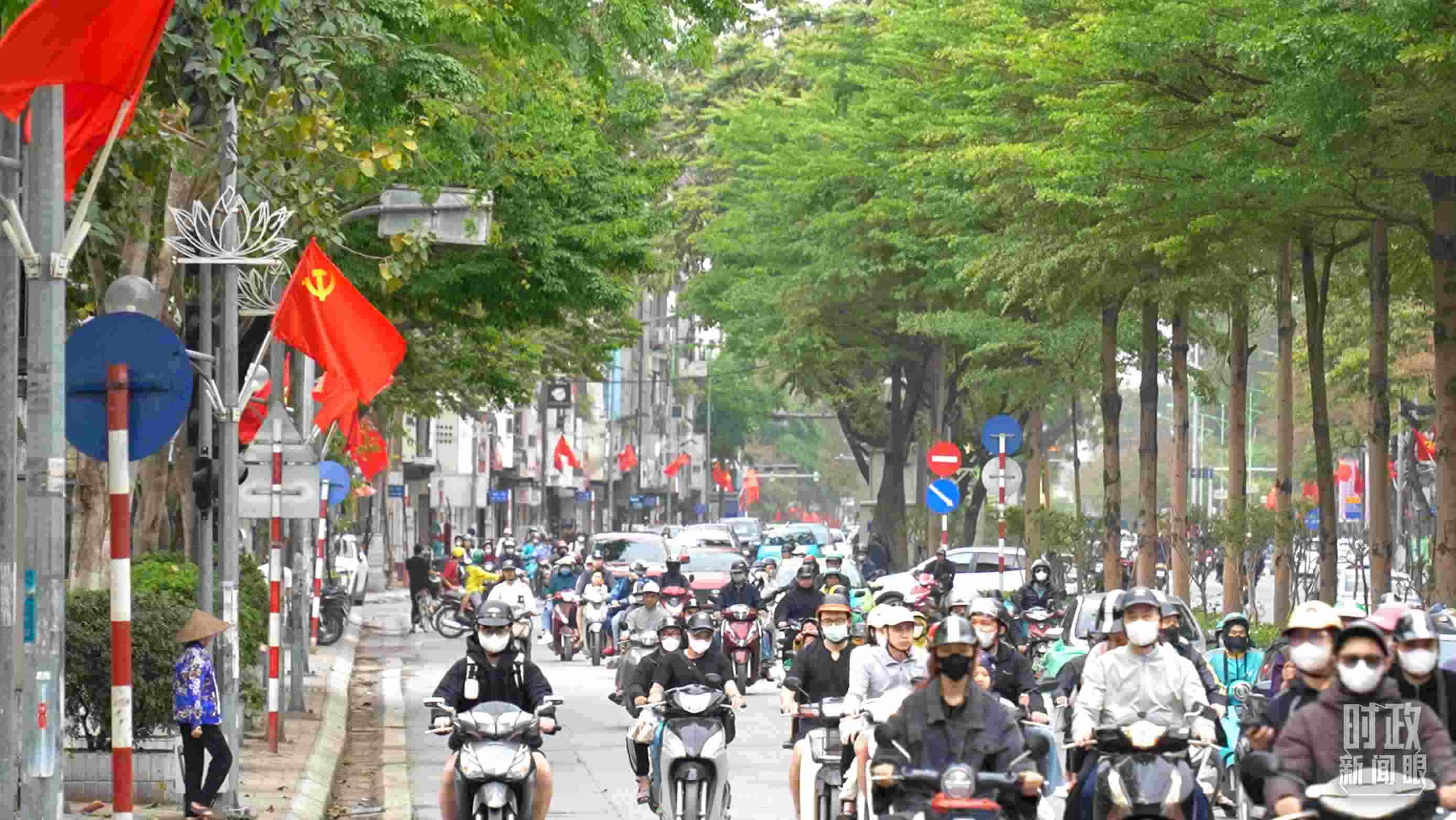 △中越兩黨兩國旗幟飄揚在河內(nèi)街頭。(總臺央視記者盧心雨拍攝)