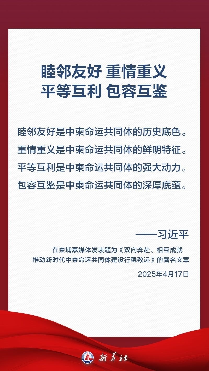 國家主席習(xí)近平4月17日至18日對柬埔寨進(jìn)行國事訪問。柬埔寨是我國傳統(tǒng)友好鄰邦和鐵桿朋友。此訪是習(xí)近平主席時(shí)隔9年再次訪問柬埔寨。