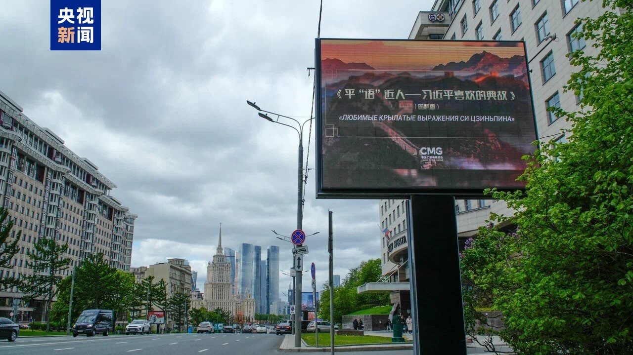 5月7日起,《平“語”近人——習(xí)近平喜歡的典故》(國際版)海報在莫斯科中央行政區(qū)的戶外大屏滾動播放。俄羅斯各界人士對節(jié)目落地播出表示期待,認為這將為俄羅斯民眾更深入領(lǐng)略習(xí)近平主席治國理政智慧,感知中國文化的博大精深打開一扇思想之窗,為增進俄中友誼、推動雙方友好往來注入深厚持久的文化力量。