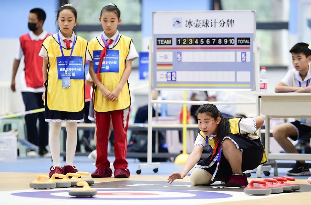 2021年6月16日—17日,呼和浩特市教育局主辦的“冰雪運動進校園”中小學旱地冰壺比賽開賽。在為期兩天的比賽中,各參賽隊員在賽場上團結協(xié)作、巧妙配合,結合戰(zhàn)術應用,用完美的擲壺和漂亮的擊打,打出了風格,打出了氣勢。最終呼和浩特市賽罕區(qū)錫林南路小學分校旱地冰壺隊獲得全市小學女子組冠軍。(海霞)