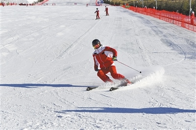 滑雪愛好者在呼和浩特市馬鬃山滑雪場(chǎng)滑雪。記者 王磊 攝