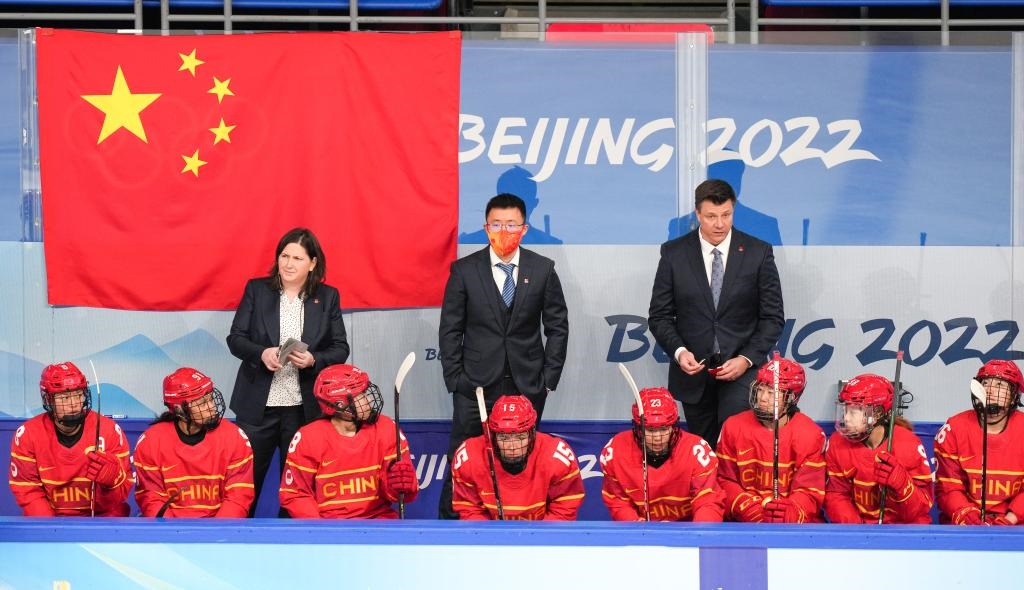 2月6日,中國(guó)隊(duì)球員在場(chǎng)邊觀戰(zhàn)。新華社記者 孟永民 攝