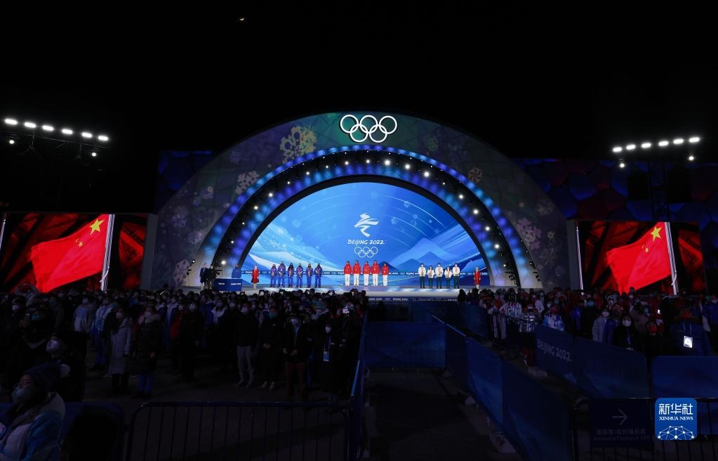 當(dāng)日,北京2022年冬奧會短道速滑混合團體接力獎牌頒發(fā)儀式在北京賽區(qū)頒獎廣場舉行。