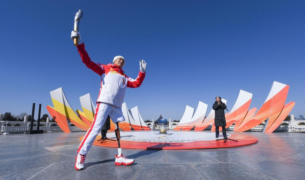就在幾天前,侯斌作為本屆冬殘奧會(huì)的火炬手在天壇圜丘順利完成了火炬?zhèn)鬟f任務(wù),并在傳遞結(jié)束后深深親吻了手上的火炬?!拔夷弥恋榈榈幕鹁妫X(jué)得它燃燒著的是勝利的火焰。”