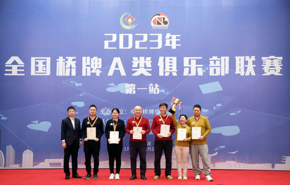 新華社北京2月20日電 中國(guó)橋牌協(xié)會(huì)消息,歷時(shí)五天的2023年全國(guó)橋牌A類俱樂(lè)部聯(lián)賽第一站20日在寧波落幕,錦爍隊(duì)奪得冠軍。