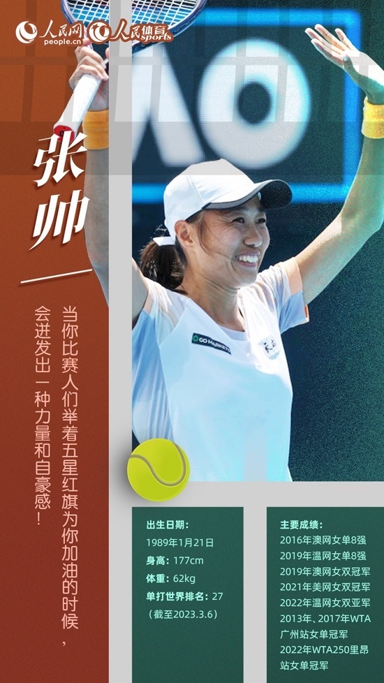 今年已經(jīng)34歲的張帥依然活躍在國際賽場上,賽季初她的單打世界排名升至第22位,創(chuàng)個人新高。澳網(wǎng)賽場,張帥單打闖進16強,雙打晉級第二輪。2月WTA500阿布扎站,張帥搭檔巴西球員史蒂芬妮獲得女雙冠軍,屬于老將的輝煌仍在繼續(xù)。