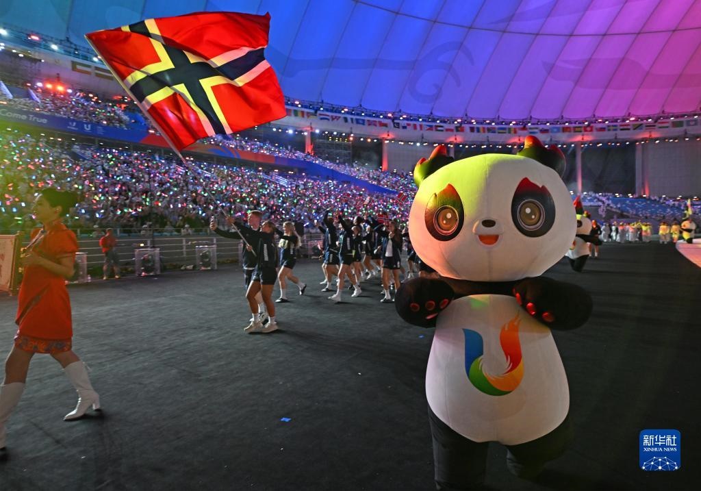 7月28日,挪威大學生體育代表團在開幕式上入場。