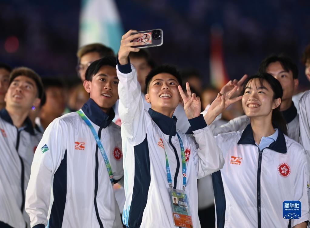 7月28日,中國香港大學生體育代表團在開幕式上入場。