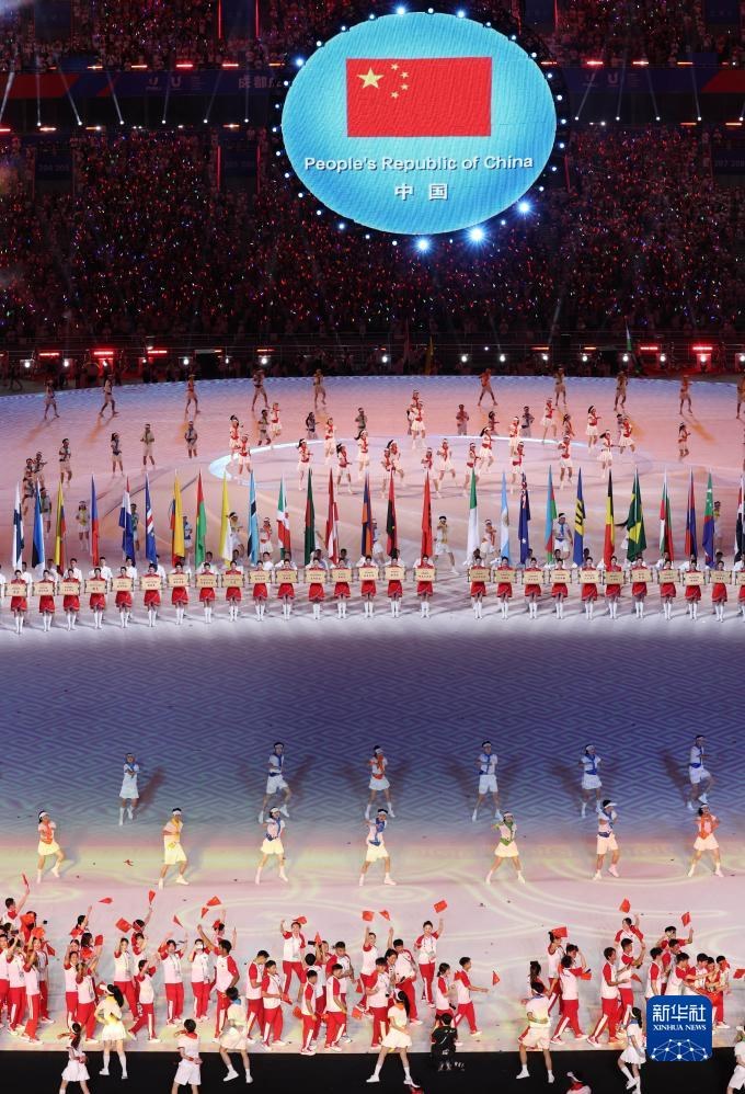 當晚,第31屆世界大學生夏季運動會開幕式在成都東安湖體育公園主體育場舉行。