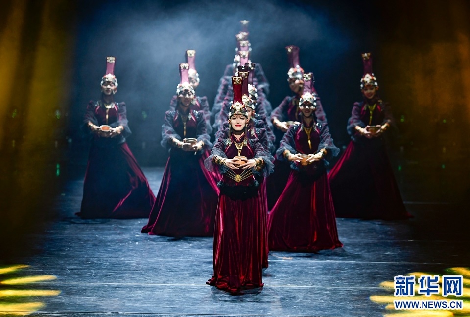 1月12日,演員在2022年內(nèi)蒙古新年舞蹈晚會(huì)中表演群舞《盅舞》。新華網(wǎng)發(fā)(王正攝)