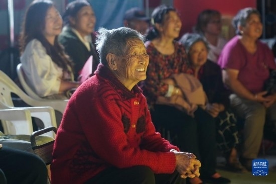 5月28日,淮安市漣水縣保灘街道肖渡村村民在觀看表演。