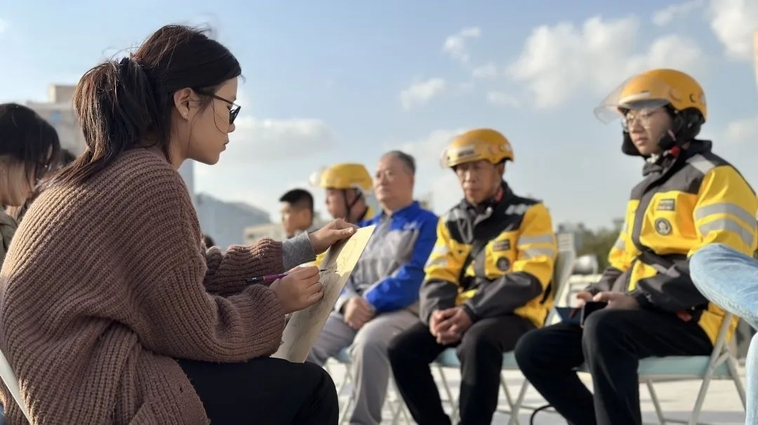 畫像小組的同學(xué)拿起手中畫筆,為團結(jié)湖南北里社區(qū)老黨員、社區(qū)志愿者、騎手社工畫像。大家認(rèn)真描繪“模特”們和藹可親的形象,不時與“模特”聊天互動,聽他們分享自己生活中的精彩故事。除此之外,部分同學(xué)圍繞垃圾分類、廉政教育等主題為社區(qū)繪制黨建板報。通過繪制板報,傳播正能量,為社區(qū)宣傳添一份力。