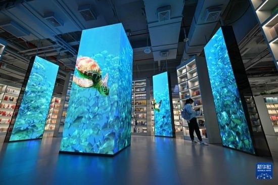 位于??诘男氯A書店海島書香店結(jié)合海南特色,營(yíng)造熱帶海洋島嶼環(huán)境藝術(shù)空間,成為集閱購(gòu)、研學(xué)、親子、文創(chuàng)陳展和藝術(shù)交流等功能于一體的開放場(chǎng)所。同時(shí),該店連線各類圖書數(shù)據(jù)庫(kù),為讀者提供海量數(shù)字閱讀產(chǎn)品,滿足讀者文化消費(fèi)需求。