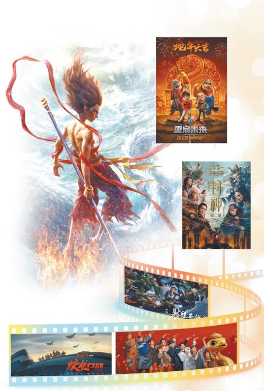 今年春節(jié)檔影片題材多元、類型豐富、市場關(guān)注度高。《封神第二部:戰(zhàn)火西岐》續(xù)寫前作暗線伏筆,展現(xiàn)人物的成長軌跡和戰(zhàn)爭場面;《哪吒之魔童鬧?!分v述哪吒鬧海故事,延續(xù)“超級喜劇、超燃視效”風(fēng)格;《唐探1900》保留類型風(fēng)格的同時,在內(nèi)容創(chuàng)新和制作規(guī)模上升級;《蛟龍行動》作為我國第一部核潛艇電影,在水下呈現(xiàn)廣闊戰(zhàn)場與復(fù)雜戰(zhàn)況;《熊出沒·重啟未來》是《熊出沒》科幻五部曲的最終章,用“極致的浪漫、大膽的想象”呈現(xiàn)一場冒險;《射雕英雄傳:俠之大者》改編自金庸經(jīng)典武俠小說,呈現(xiàn)了“俠之大者,為國為民”。