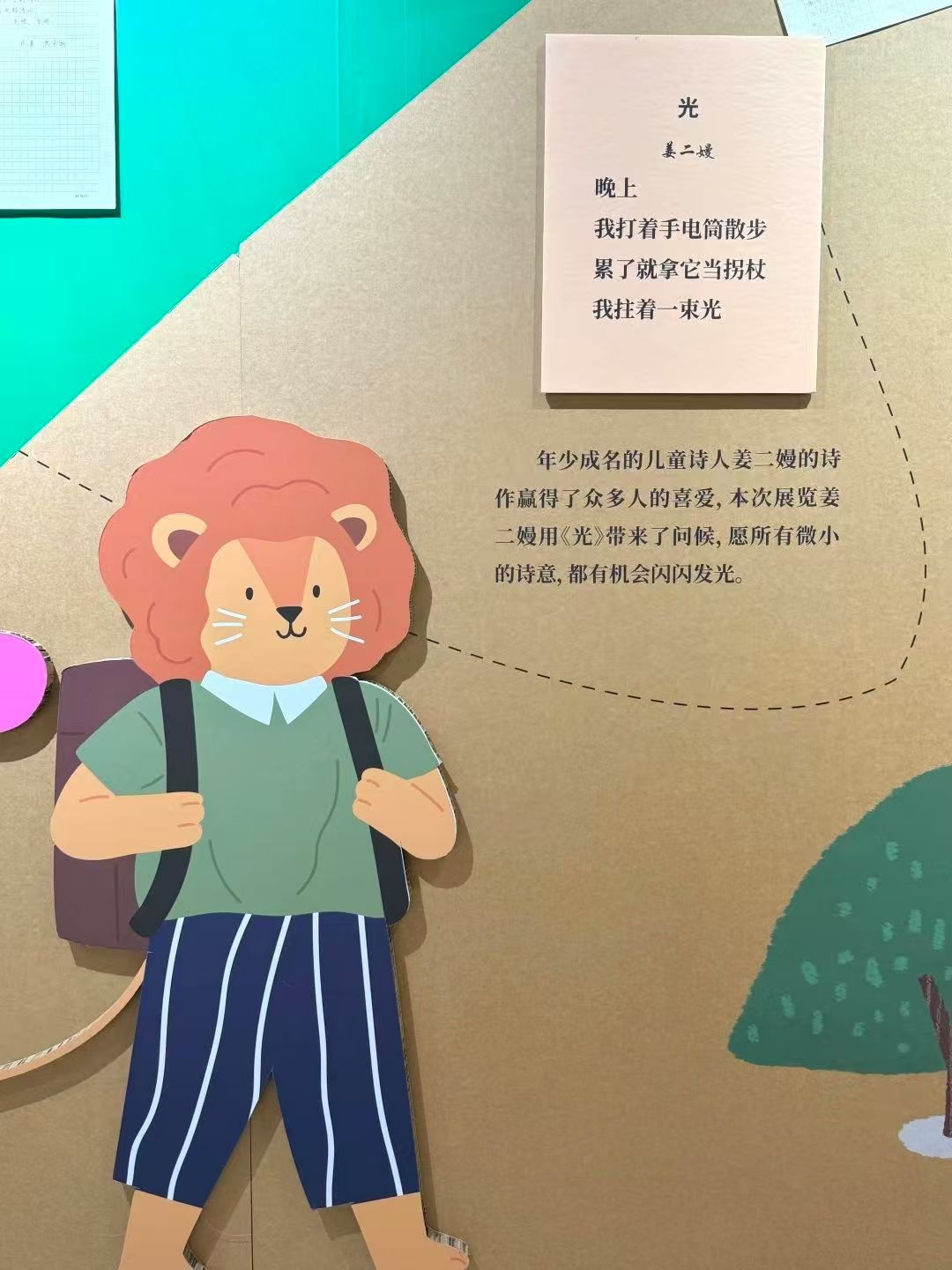 本次展覽匯集全國各地少年兒童創(chuàng)作的百余首詩歌,其中包括經(jīng)嚴格評審產(chǎn)生的35篇優(yōu)秀作品。展覽分為“家在水草豐茂的地方”“為萬物輕聲命名”“原來這就是長大呀”“未來花正開”四個單元,從描繪勒勒車轍蜿蜒的稚趣短句,到追問星星為何眨眼的天真遐想,再到幻想成為箭矢破浪飛馳的斑斕夢境,童心與詩意在展覽中浪漫相遇,開啟了一場屬于孩子們的詩歌盛會。