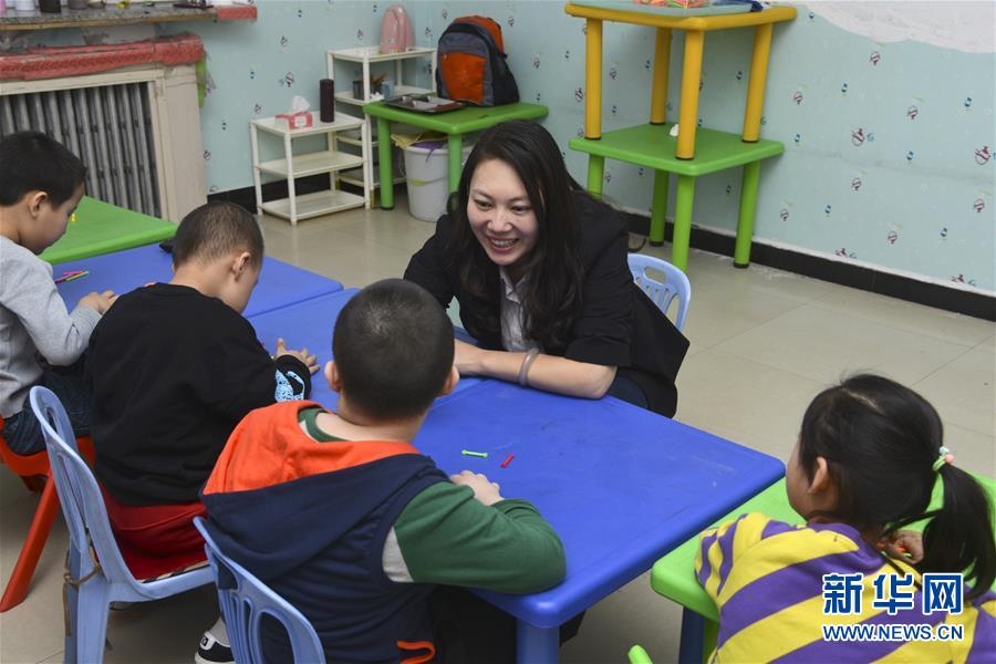 2月27日,在內(nèi)蒙古赤峰市星之路自閉癥兒童康復(fù)中心,王欣會與自閉癥兒童交流。全國人大代表王欣會是內(nèi)蒙古赤峰市星之路自閉癥兒童康復(fù)中心校長,多年來致力于為自閉癥兒童提供康復(fù)服務(wù),努力幫助他們和同齡人一樣,進(jìn)入普通幼兒園或小學(xué)就讀。王欣會呼吁社會各界給予自閉癥兒童更多關(guān)注,幫助他們?nèi)谌肷鐣?。新華社記者鄒予攝
