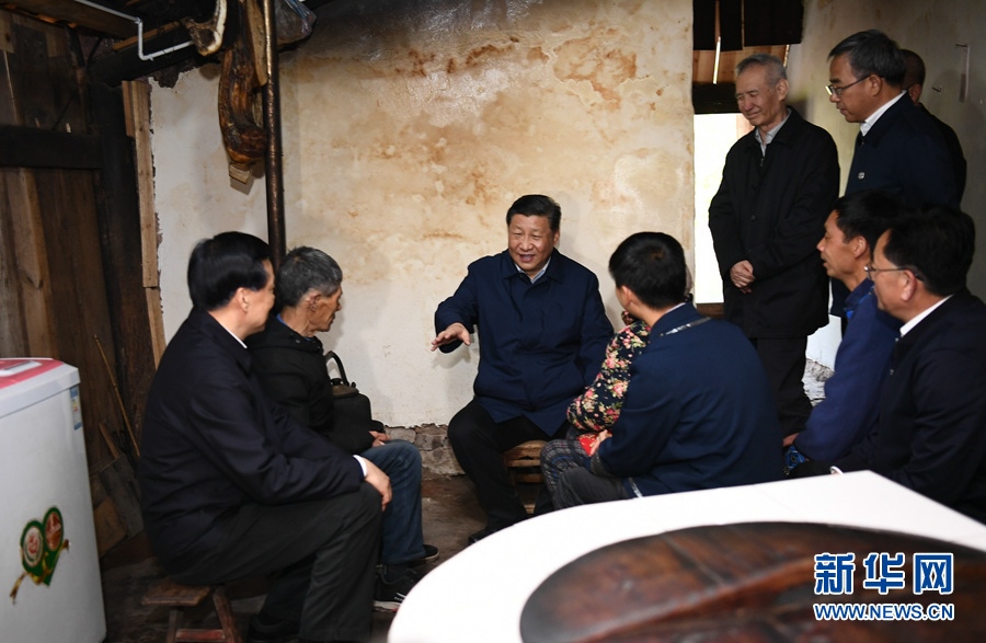 這是4月15日下午,習近平在石柱土家族自治縣中益鄉(xiāng)華溪村看望貧困戶譚登周一家。 新華社記者 謝環(huán)馳 攝