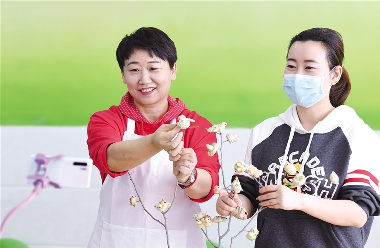 4月3日,呼和浩特市玉泉區(qū)通順街小學老師在直播中展示面塑“寒燕兒”的制作技藝。清明節(jié)將至,通順街小學開展“清明時節(jié)寒燕兒炫彩”線上傳統(tǒng)文化課活動。通過視頻直播、錄播等形式,向同學們介紹當?shù)厍迕鲿r節(jié)特色面塑“寒燕兒”的制作技藝,讓孩子們了解清明節(jié)習俗,感受傳統(tǒng)文化魅力。據(jù)悉,北方民間每到清明節(jié)來臨的時候,家家戶戶都有蒸面塑“寒燕兒”的習俗。內(nèi)蒙古日報融媒體記者 王磊 攝