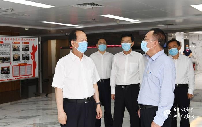 7月13日,自治區(qū)黨委書記、人大常委會(huì)主任石泰峰來到蒙商銀行新城支行調(diào)研。內(nèi)蒙古日報(bào)記者 袁永紅 攝