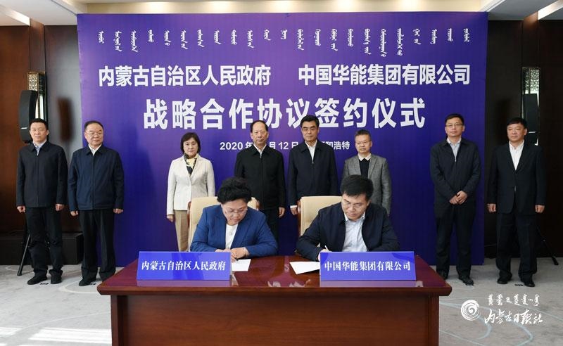 10月12日,內(nèi)蒙古自治區(qū)人民政府與中國華能集團(tuán)有限公司在呼和浩特簽署戰(zhàn)略合作協(xié)議。自治區(qū)黨委書記、人大常委會主任石泰峰,自治區(qū)黨委副書記、自治區(qū)主席布小林,中國華能集團(tuán)有限公司董事長舒印彪見證簽約。