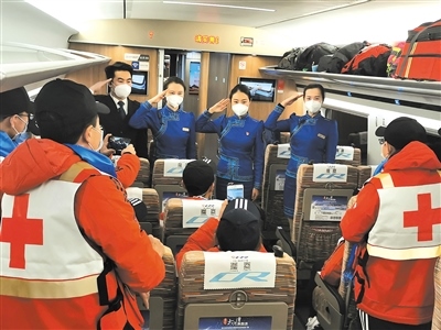 作為連通全國(guó)的運(yùn)輸動(dòng)脈,在完成常規(guī)運(yùn)輸任務(wù)的基礎(chǔ)上,高鐵列車(chē)還承擔(dān)起了運(yùn)送醫(yī)務(wù)人員、醫(yī)療用品和保障物資的特別任務(wù)。內(nèi)蒙古援鄂醫(yī)療隊(duì)員兩批次乘坐G2438次列車(chē)從北京中轉(zhuǎn)赴武漢;五批次乘坐“草原動(dòng)車(chē)”由鄂爾多斯回到呼和浩特?!八陀⑿鄢稣?,接英雄回家”,七次運(yùn)輸任務(wù),高鐵車(chē)隊(duì)以最高禮遇和精心的服務(wù),贏得醫(yī)療隊(duì)員們的紛紛好評(píng)?!爸x謝你們,出發(fā)時(shí)為我們送行,歸來(lái)時(shí)為我們唱起凱旋之歌?!贬t(yī)療隊(duì)隊(duì)員李紅娟緊緊握住列車(chē)長(zhǎng)張雨的手說(shuō)。