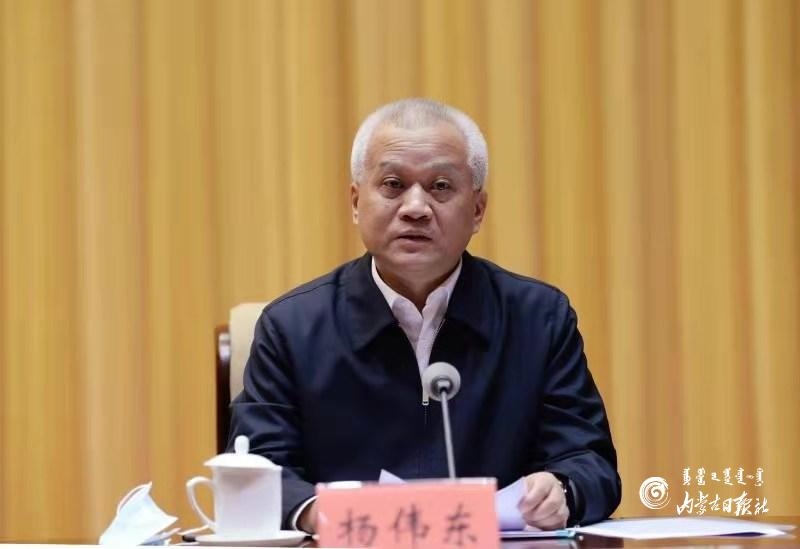 2月8日上午,自治區(qū)黨委常委、組織部長(zhǎng)楊偉東主持會(huì)議。內(nèi)蒙古日?qǐng)?bào)記者 袁永紅 攝
