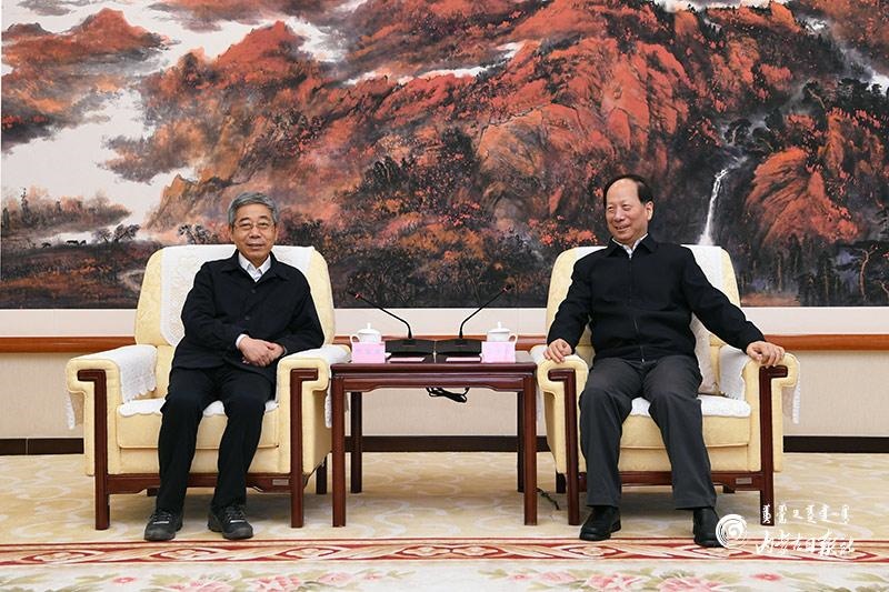 3月18日,自治區(qū)黨委書記、人大常委會(huì)主任石泰峰在呼和浩特會(huì)見教育部黨組書記、部長(zhǎng)陳寶生。內(nèi)蒙古日?qǐng)?bào)社融媒體記者 袁永紅 攝