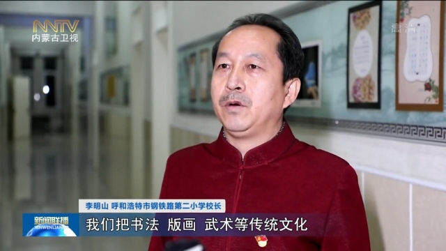 李明山 呼和浩特市鋼鐵路第二小學(xué)校長:我們把書法、版畫、武術(shù)等傳統(tǒng)文化融入到孩子們的課堂中,就是為了,讓他們從傳統(tǒng)文化中,感受我們民族的根,民族的魂,