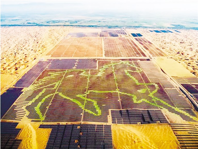 駿馬奔騰似潮涌,一日千里獨行空。庫布其沙漠腹地,由196320塊藍色光伏板組成的駿馬圖栩栩如生,格外吸睛。內(nèi)蒙古現(xiàn)代能源經(jīng)濟,一如這昂首奔騰的駿馬,向著“雙碳”目標奮蹄疾馳。(記者 許曉嵐 康麗娜)