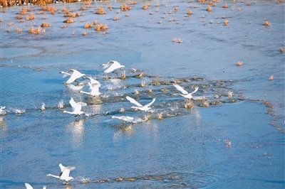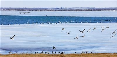 候鳥(niǎo)成為薩拉烏蘇國(guó)家濕地公園的常客。