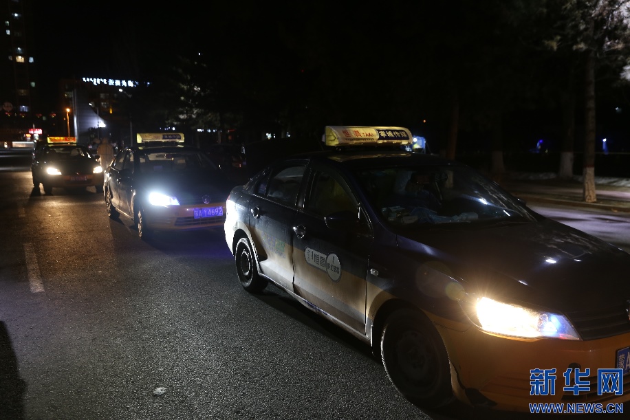 2月20日晚9點(diǎn),前往指定地點(diǎn)運(yùn)送樣本的出租車(chē)排起了長(zhǎng)隊(duì),完成這一次運(yùn)送,司機(jī)們當(dāng)天的任務(wù)就完成了。新華網(wǎng)發(fā) 李倩攝