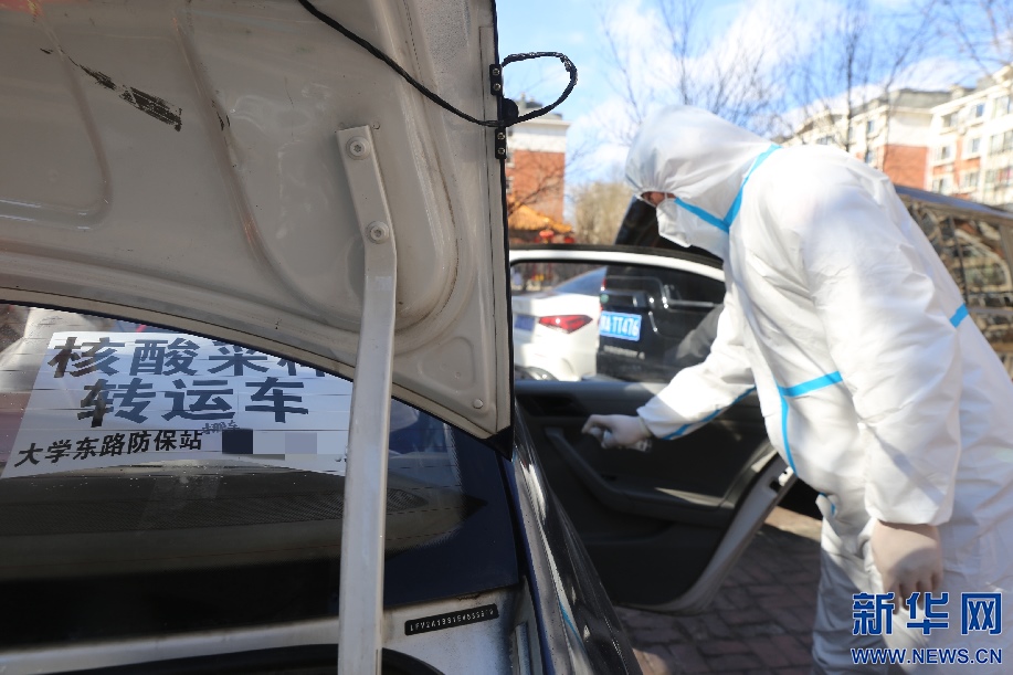 到達(dá)核酸采樣點(diǎn)后,籍東斌在工作人員取樣本間隙對(duì)車(chē)輛進(jìn)行消殺。核酸樣本轉(zhuǎn)運(yùn)存在著一定風(fēng)險(xiǎn)性,籍東斌說(shuō),只要按要求做好防護(hù),按規(guī)定完成工作,就沒(méi)什么問(wèn)題。新華網(wǎng)發(fā) 李倩攝