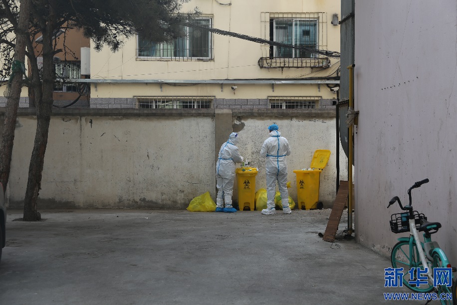 上午的樣本轉(zhuǎn)運(yùn)工作告一段落,籍東斌和工作人員在指定地點(diǎn)脫掉防護(hù)服,進(jìn)行全身消殺。新華網(wǎng)發(fā) 李倩攝