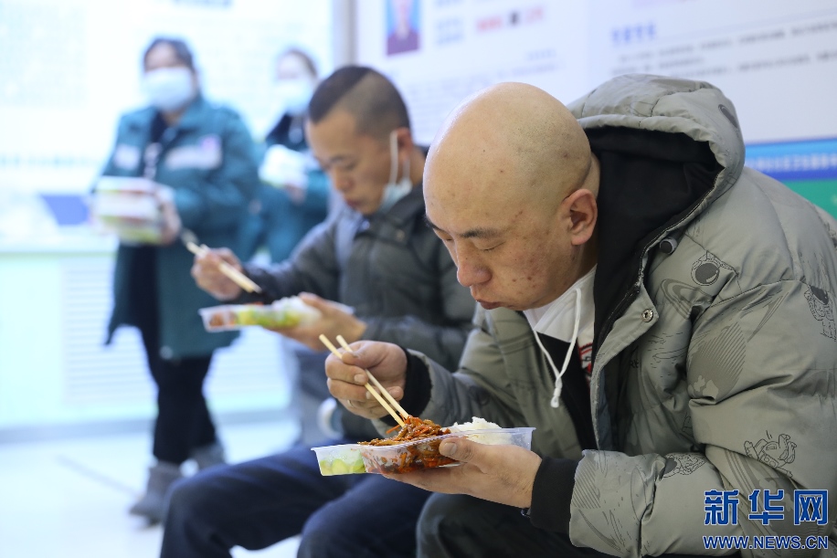 用餐時(shí)間也是轉(zhuǎn)運(yùn)司機(jī)們短暫的休整時(shí)間。吃過(guò)午飯,籍東斌又要馬上投入到下一輪緊張的工作中。新華網(wǎng)發(fā) 李倩攝