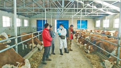 興安盟科技特派員王強(qiáng)(右二)對養(yǎng)殖戶進(jìn)行現(xiàn)場指導(dǎo)。
