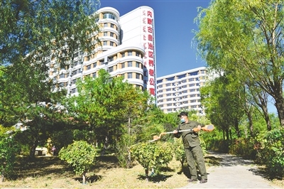 9月23日上午,物業(yè)工作人員在自治區(qū)示范性養(yǎng)老公寓院內(nèi)進(jìn)行綠化維護(hù)。內(nèi)蒙古日報社融媒體記者 安寅東攝