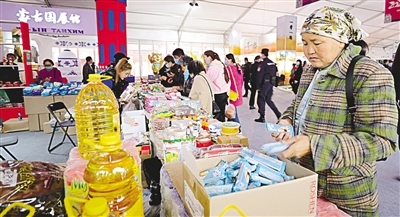 滿洲里互貿(mào)區(qū)的商品吸引附近的牧民前來購買。 記者 李新軍 攝
